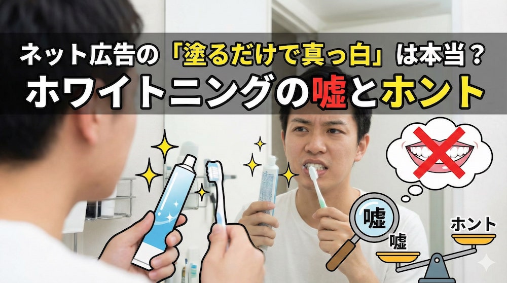 歯の悩み・疑問 ネット広告の「塗るだけで真っ白」は本当?ホワイトニングの嘘とホント 「えっ、塗るだけで歯がこんなに白くなるの!?」 …実は、あなたもスマホを見ていて、そんな衝撃的なネット広告に思わず指を止めてしまった経験はありませんか?キラキラしたビフォーアフター写真に、「初回限定980円!」なんて言わ... rafftfgbb12月 24, 202512月 26, 2025