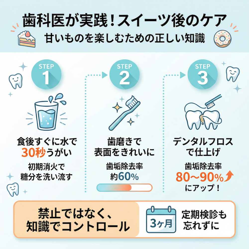 たったこれだけです。これだけで、あなたの歯の寿命は劇的に延び、甘いものを楽しむ罪悪感は、きっと軽くなるはずです。